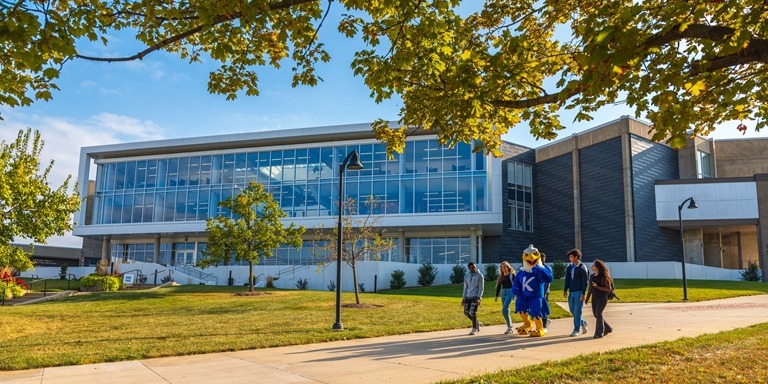 Lead image: Kirkwood Community College students join mascot, Sammy the Eagle, for a fall campus tour. (Photo credit: Kirkwood Community College.)