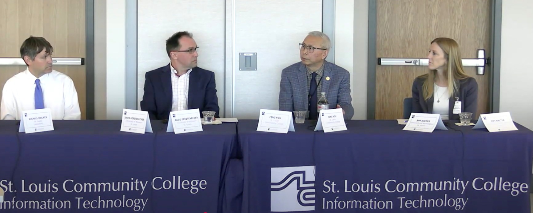 In March 2025, the author initiated, organized, and moderated an event at STLCC in her capacity as a member of the AI Governance Committee, under the leadership of Renita Luck, Associate Vice Chancellor for Distance Learning and Academic Support. A panel of leaders from STLCC, University of Missouri-St. Louis, Washington University in St. Louis, and St. Louis University met for the first time to discuss the effects of technology such as ChatGPT on higher education. Despite vast differences in funding, almost all colleges and universities are dealing with the same challenges in the face of AI: how to incentivize students to enroll in classes despite the growing free, on-demand access to information online; how to inspire students to maintain academic integrity; how to keep data safe; and how to upskill employees given revolutionary technology. At this event, the chief information officers from four institutions that share goals, students, and industry partners had an opportunity to contribute insights and brainstorm solutions. Bringing these leaders together was an innovative strategy for enhancing teaching and learning with emerging technologies.