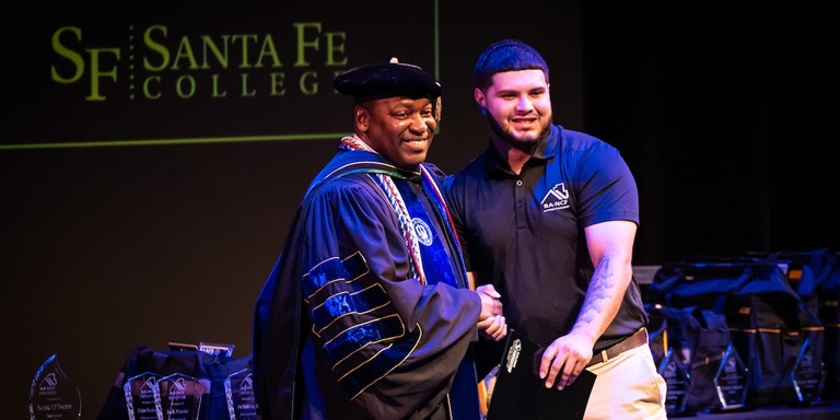 Lead image: Dr. Broadie congratulates an apprenticeship graduate from the Builders Association of North Central Florida.